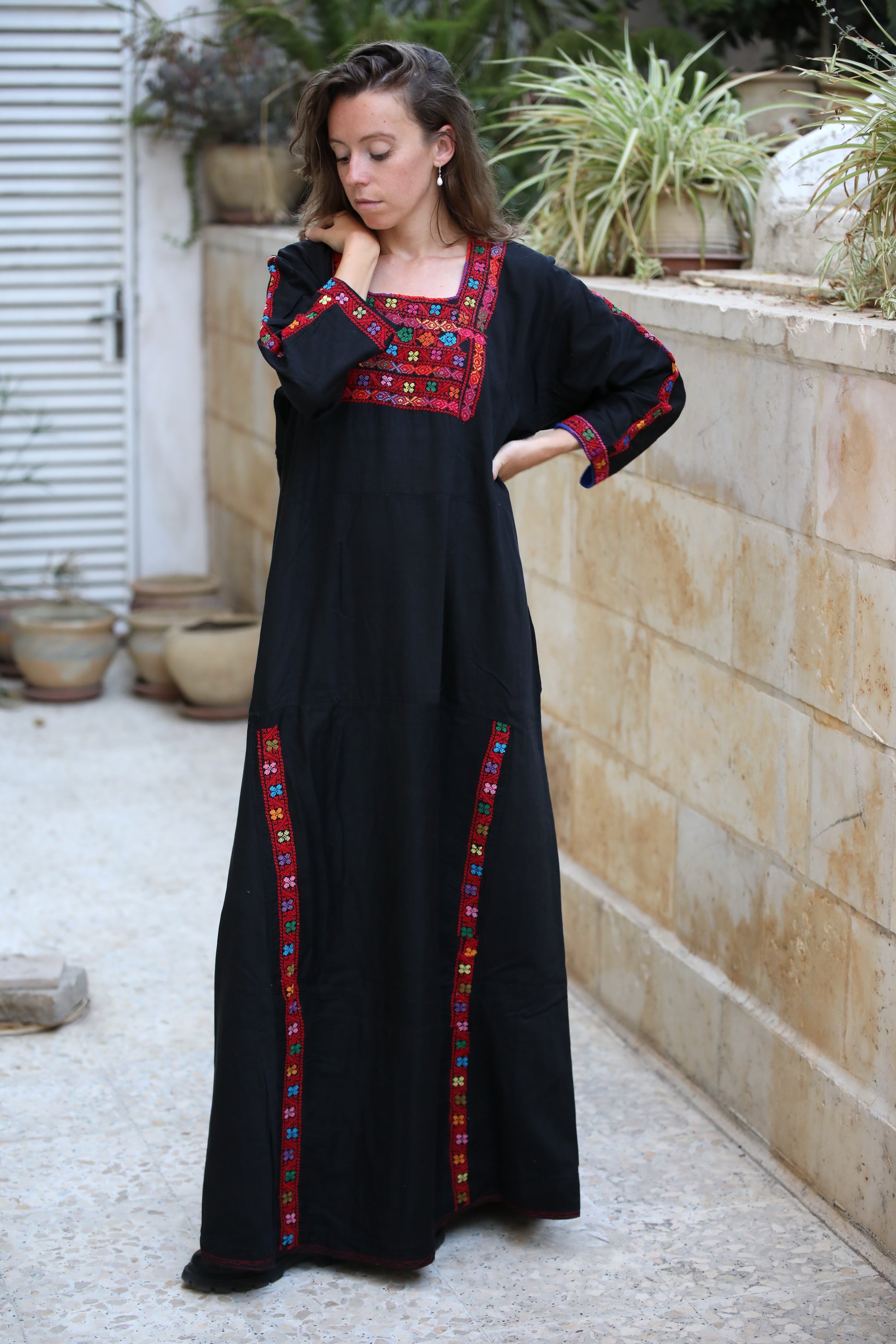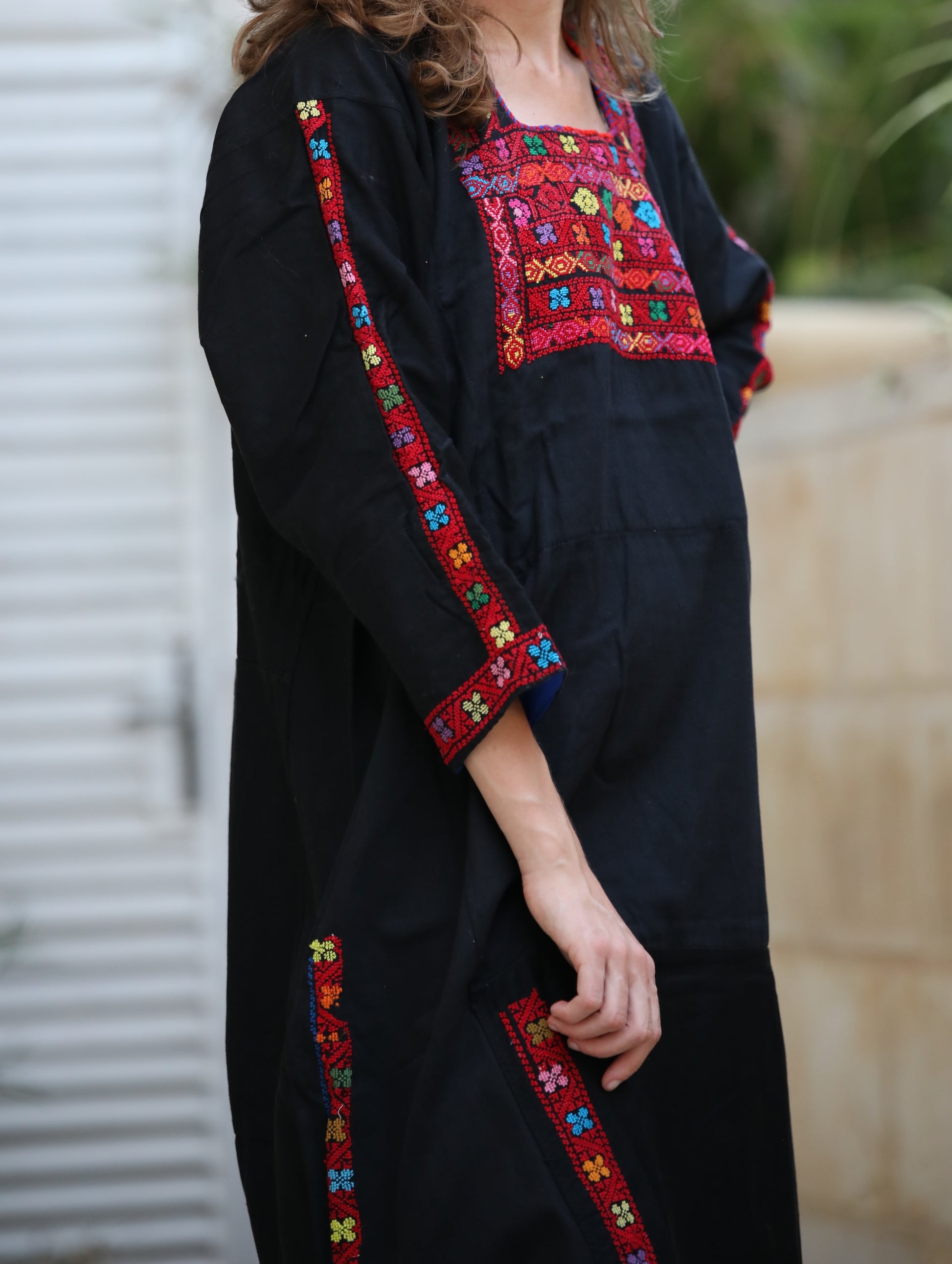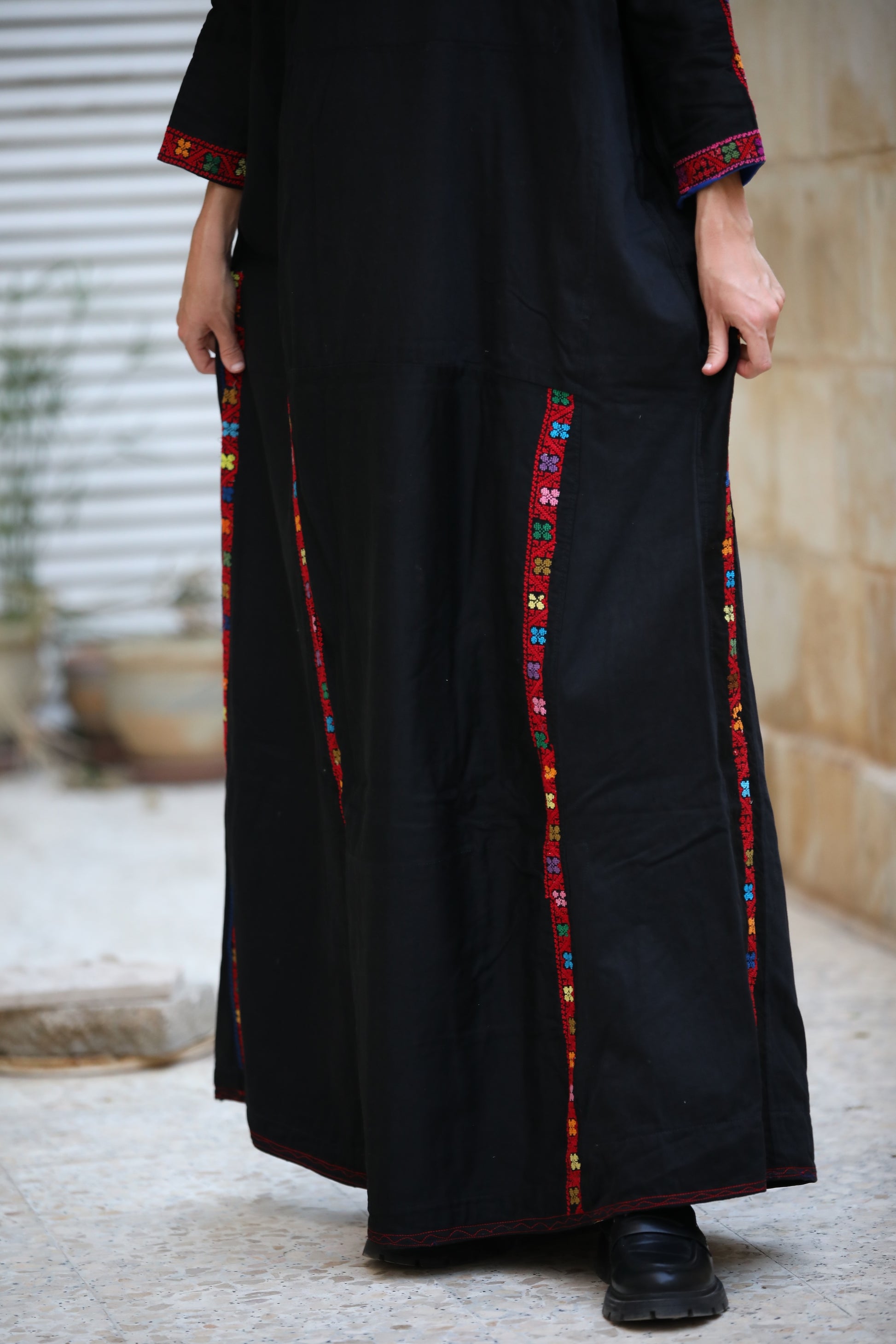 Handmade Tatreez on black cotton.