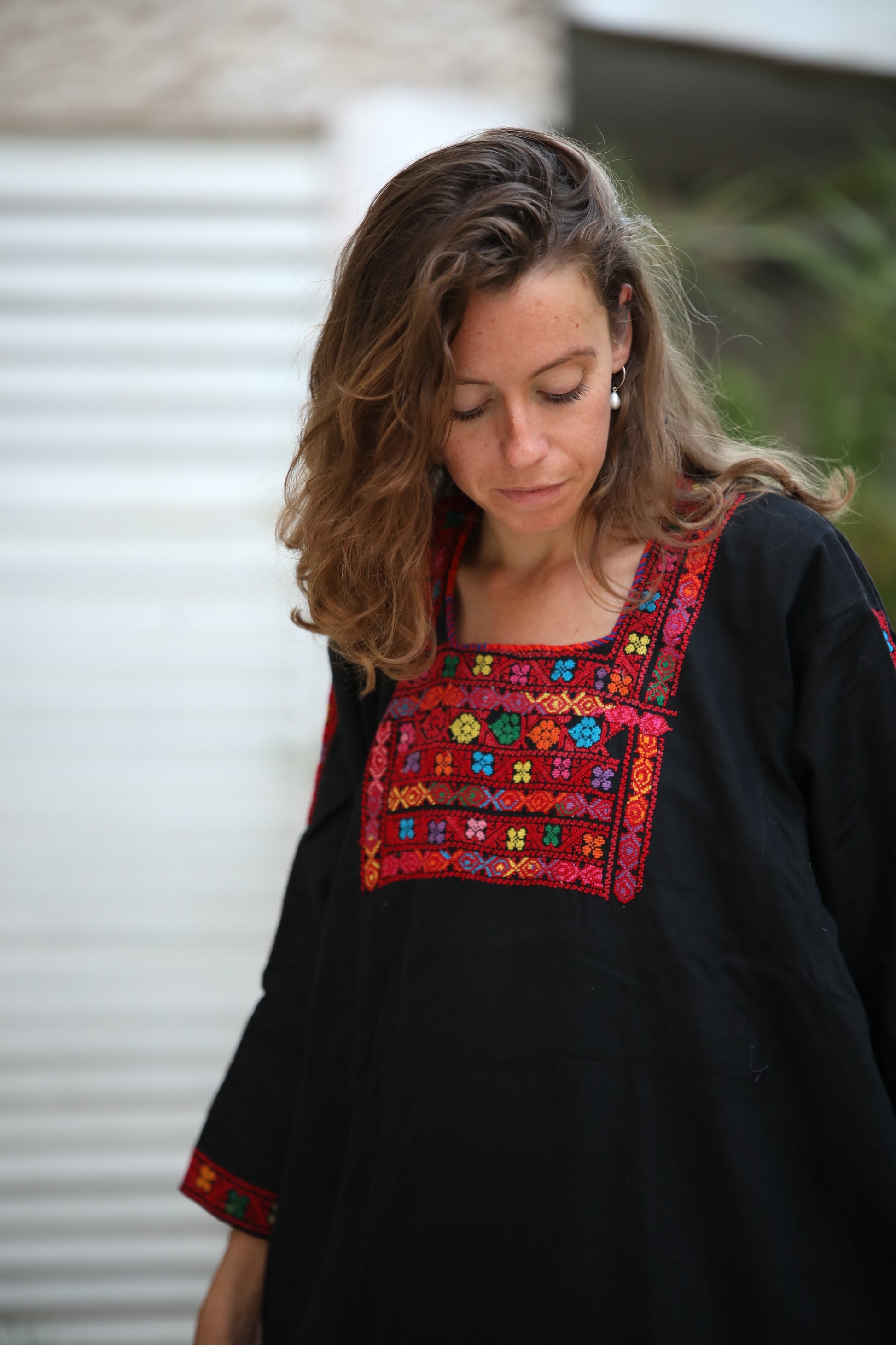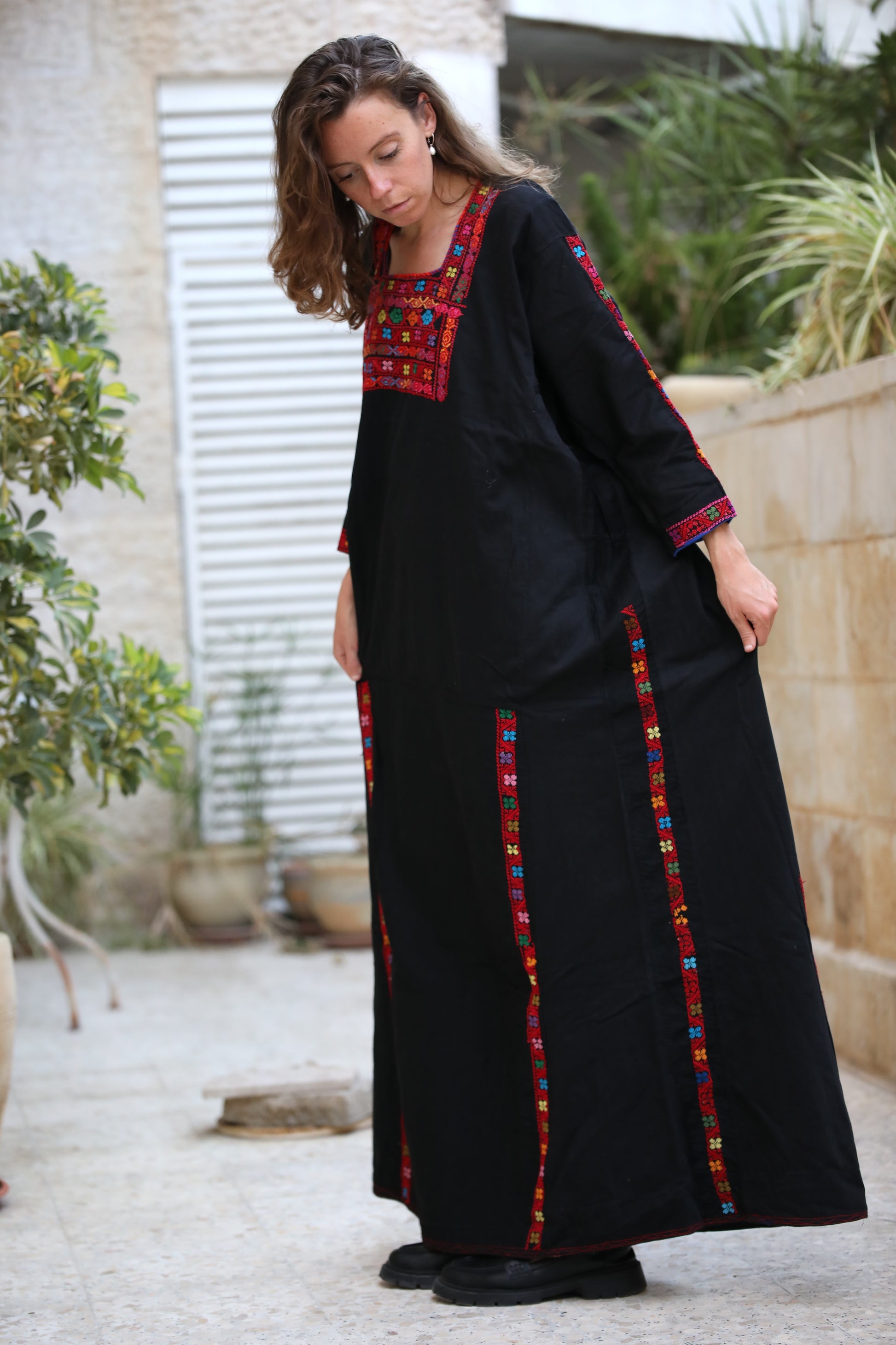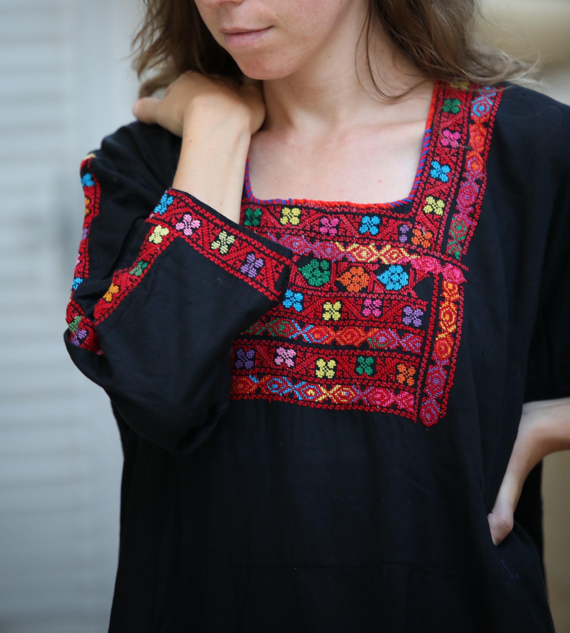 Handmade Tatreez on black cotton.