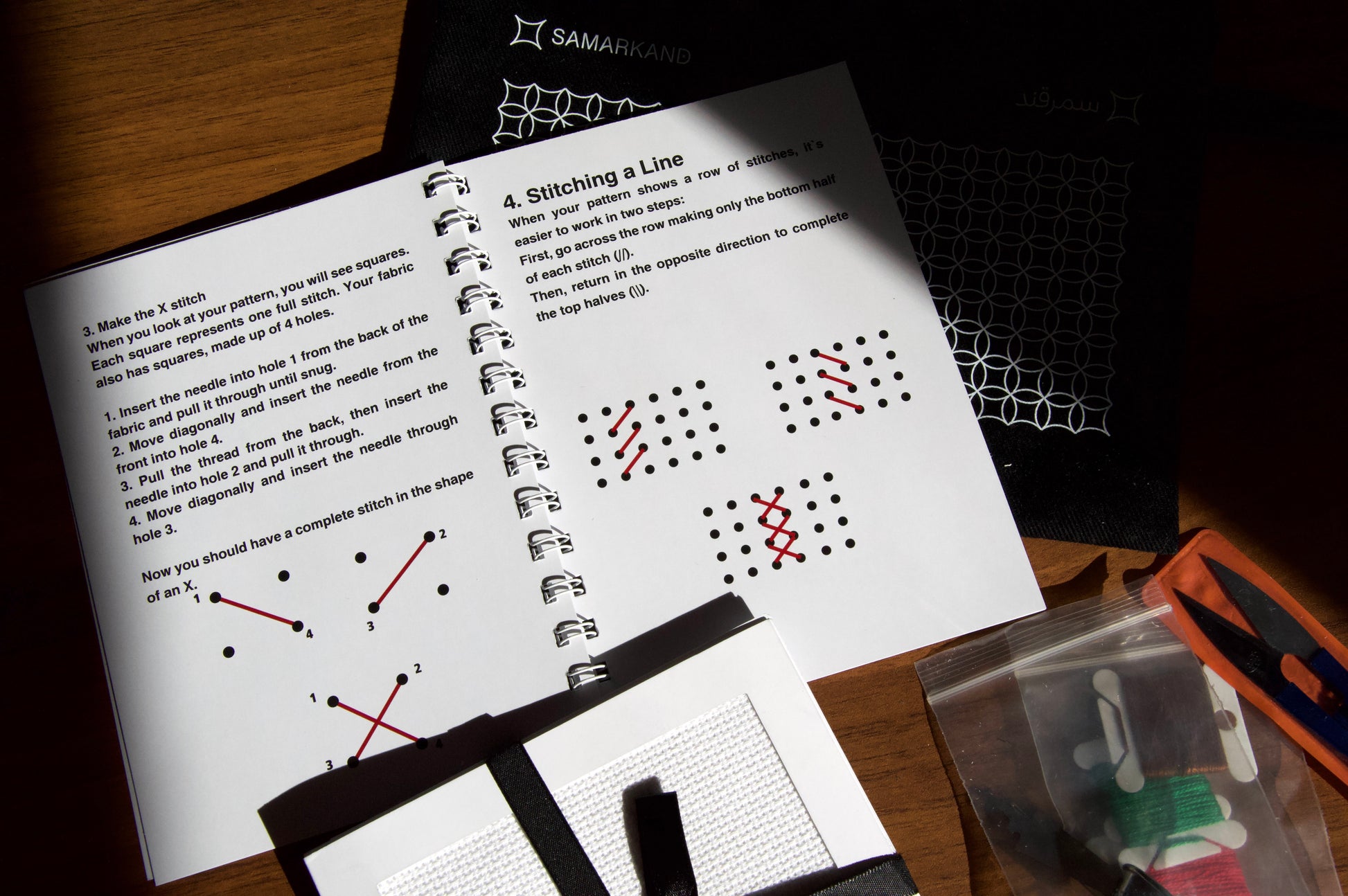 - A step-by-step instructional booklet with Tatreez patterns (in Arabic & English)