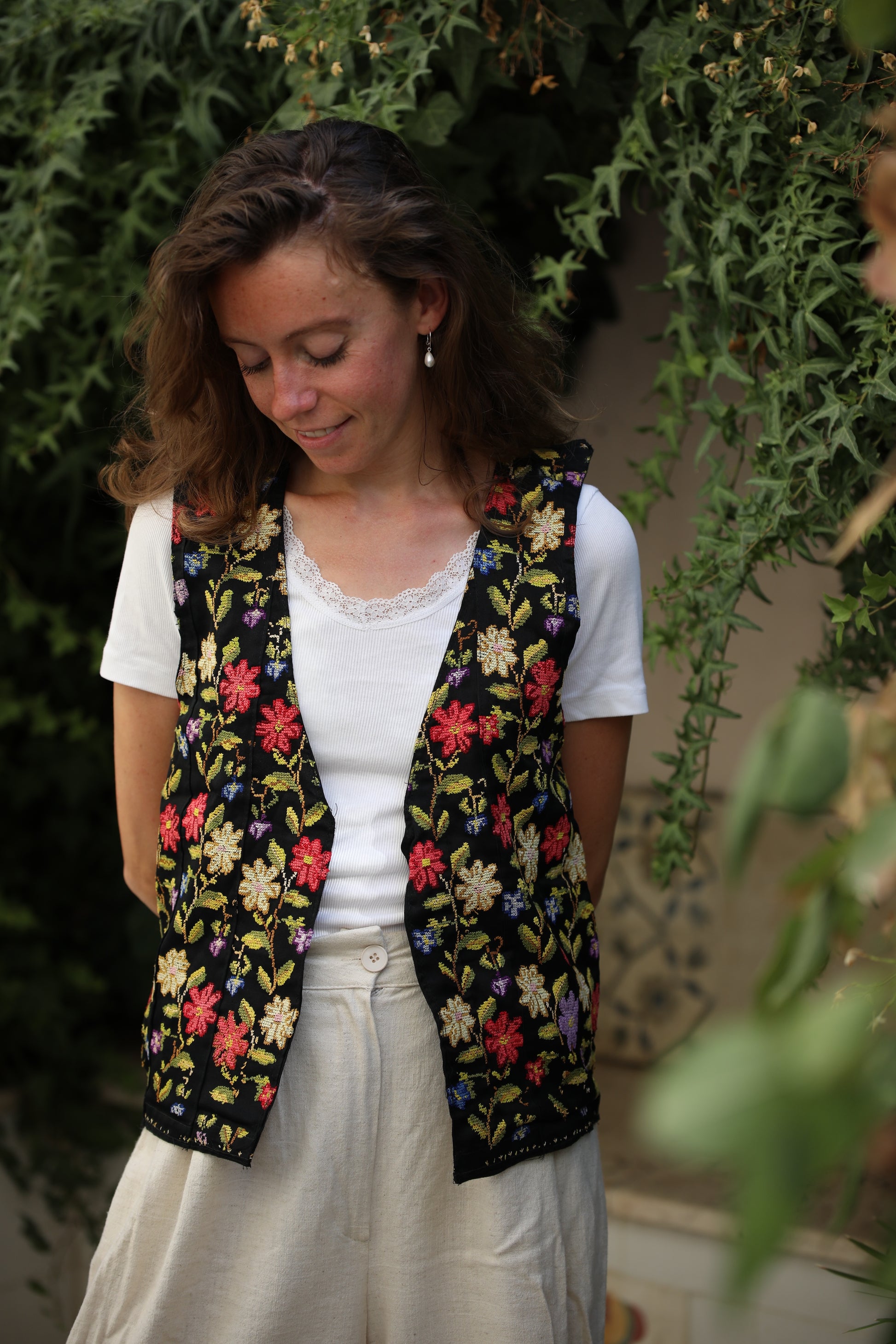 This vest is repurposed from a vintage Thobe originally from the Hebron region.
